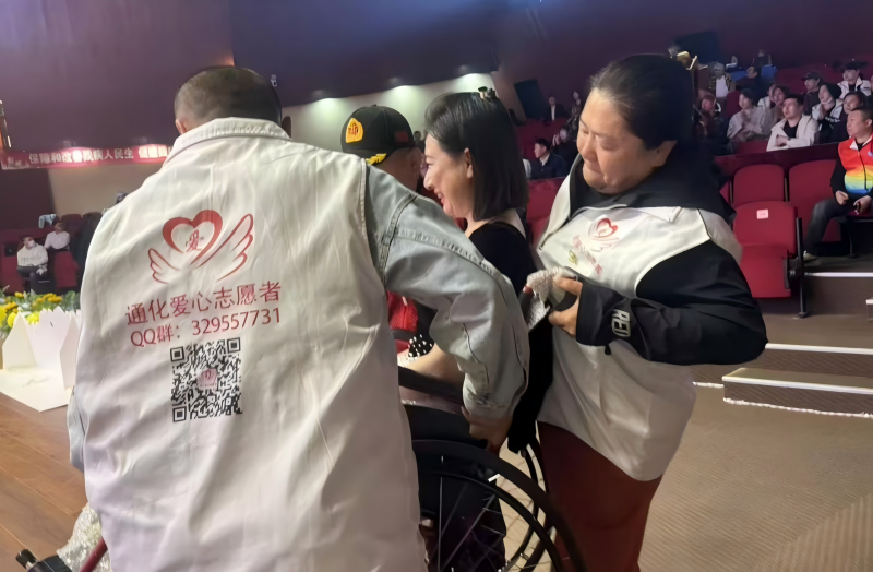 文化层面,爱心企业吉林银行通化分行积极投身公益,与市残联、市文化馆联合主办“爱心同行 艺展风采”残疾人文艺汇演。活动全程离不开志愿者的贴心守护:从提前协助残疾人演员化妆、调试轮椅等设备,到演出时引导登台、衔接节目流程,志愿者用细致服务消除演员们的后顾之忧。